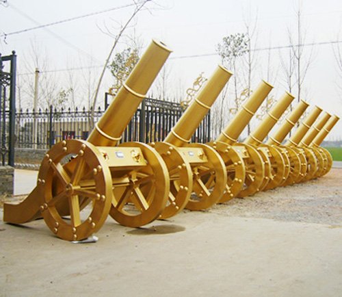 一、外觀威武壯觀,黃金色,采用優(yōu)質(zhì)冷板制作,禮炮整體沒 有焊接痕跡,是禮炮中的佼佼者;